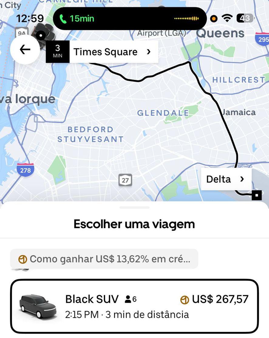 💡 Há relatos frequentes de passageiros que pagaram mais de US$ 350 por conta do “surge pricing” — o aumento automático do aplicativo em horários de alta procura.